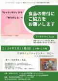 公開日:2026年02月03日サポートセンターからのお知らせフードドライブの出張受付を行います(in片柳コミュニティセンター)2月15日(日)の片柳コミセンまつりにて、フードドライブの出張受付を行います。