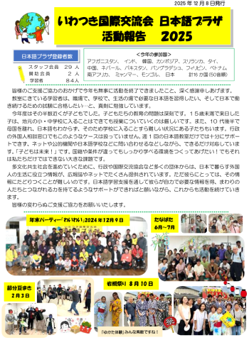 国際交流、多文化共生、平和公開日:2026年01月28日2025年の活動報告と2026年の活動開始のお知らせ新年があけて、あっという間に もうひと月。