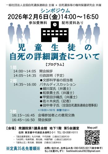 福祉、たすけあい公開日:2026年01月10日『児童生徒の自死の詳細調査について』シンポジウム開催日:2026年02月06日(金)