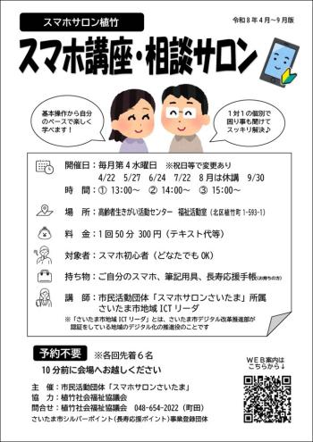 情報、先端技術、インターネット公開日:2026年03月03日【2026年度第1四半期】スマホサロン別所(初心者のためのスマホ講座)開催日:毎月第2・第4木曜日