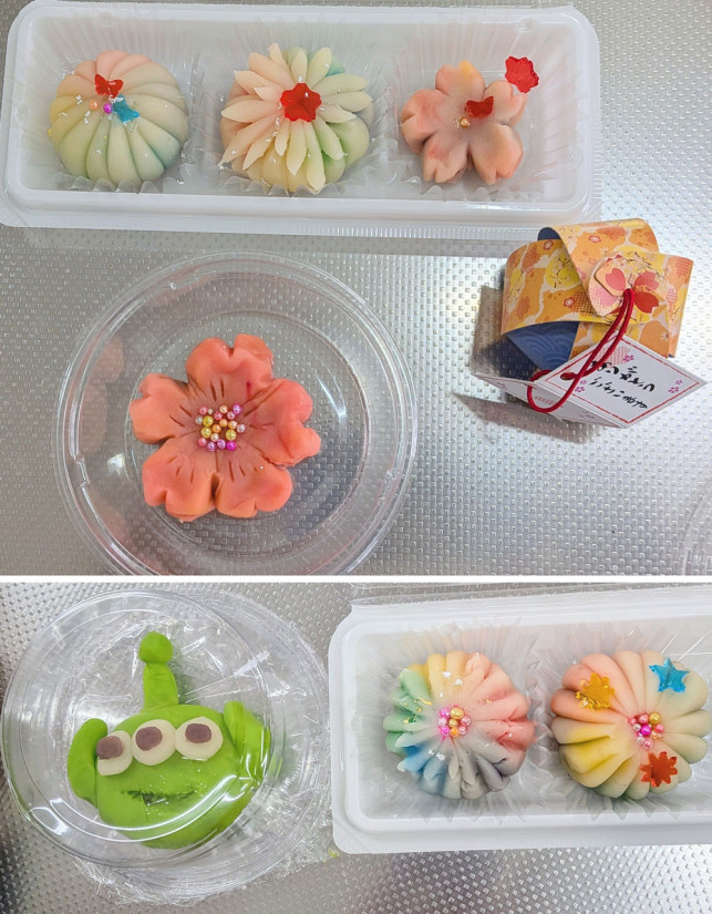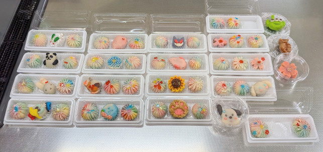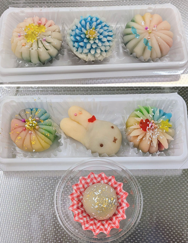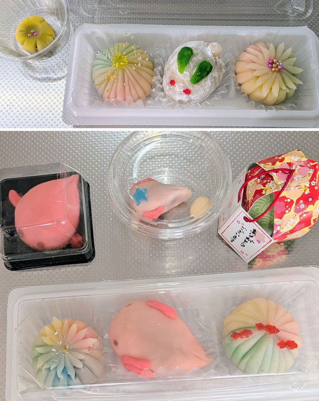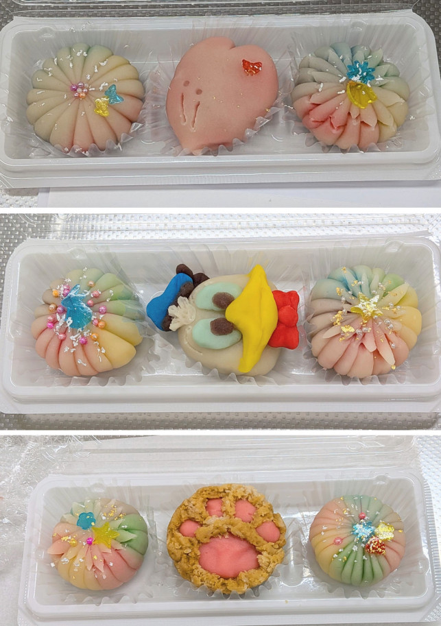 優しい色合いの虹色練り切り、そしてほんかわ可愛らしい自由作品が揃いました(^^)。