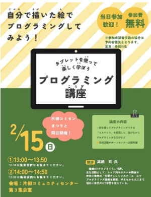 また、ビスケットなどのプログラミング講座を、小学生向けに開設しています。